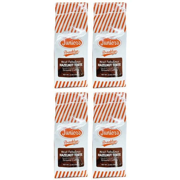 Junior’s Most Fabulous Hazelnut Torte, Medium Roast Ground Coffee, 4/12 oz bags